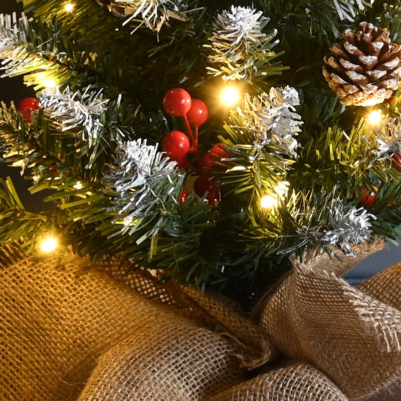 Festive 2ft (60cm) Pre Lit Artificial Christmas Tree with Berries & Pinecones (P053676)