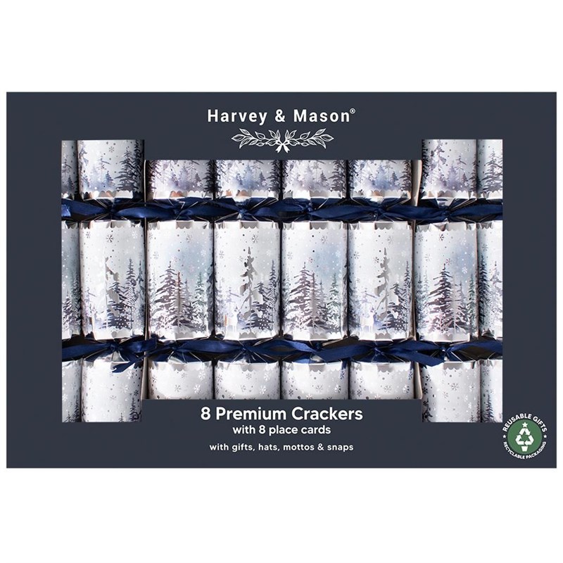 Harvey & Mason Premium Tree Scene Silver Christmas Cracker - Pack of 8 (XM7020)