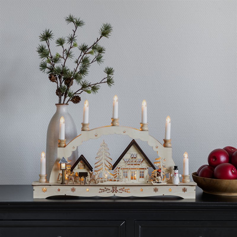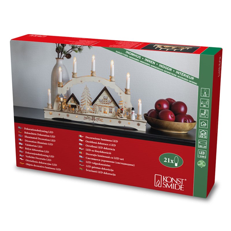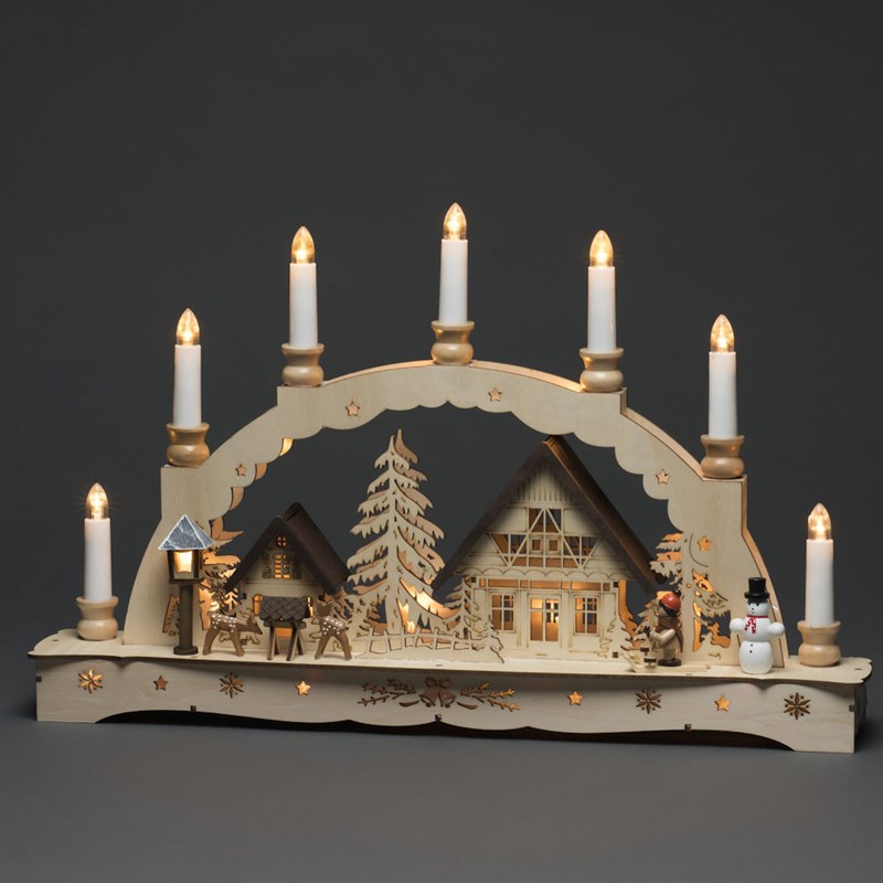 Konstsmide Light Up Wooden Christmas Silhouette With 7 Candles & 21 Warm White LEDs (3254-100EE)
