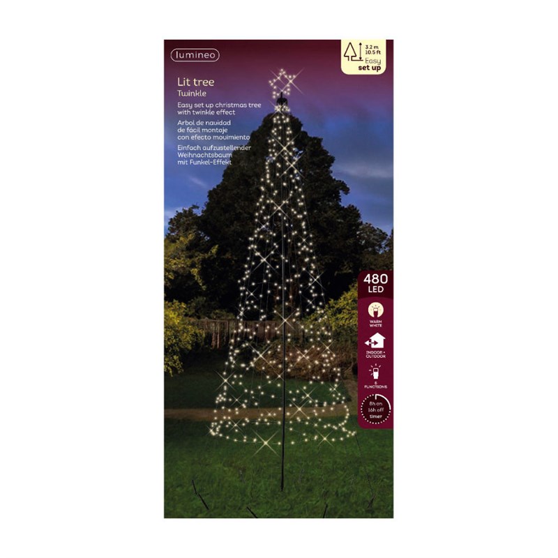 Kaemingk 320cm LED Light Up Christmas Tree Shape with 480 Warm White LEDs (501269)