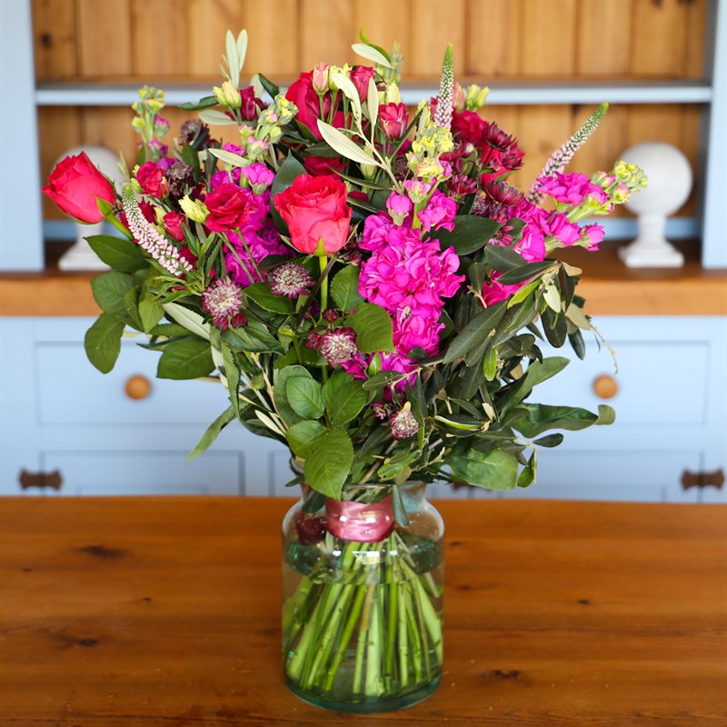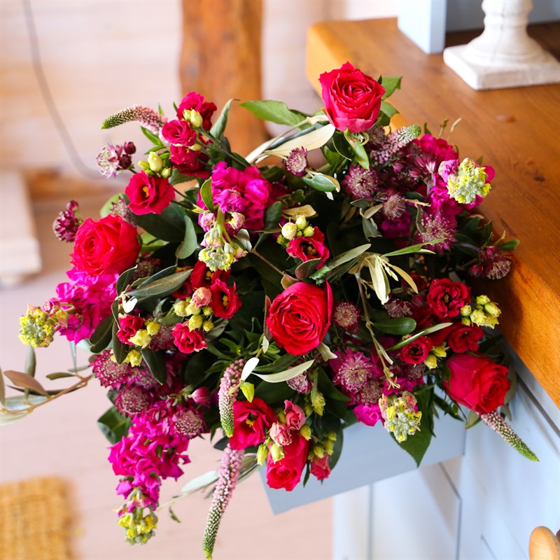 All of our bouquets are set amongst of seasonal foliages beautifully wrapped in tissue paper in a presentation box. As well as this, their stems are kept in water, so our flowers will stay fresh for their journey.