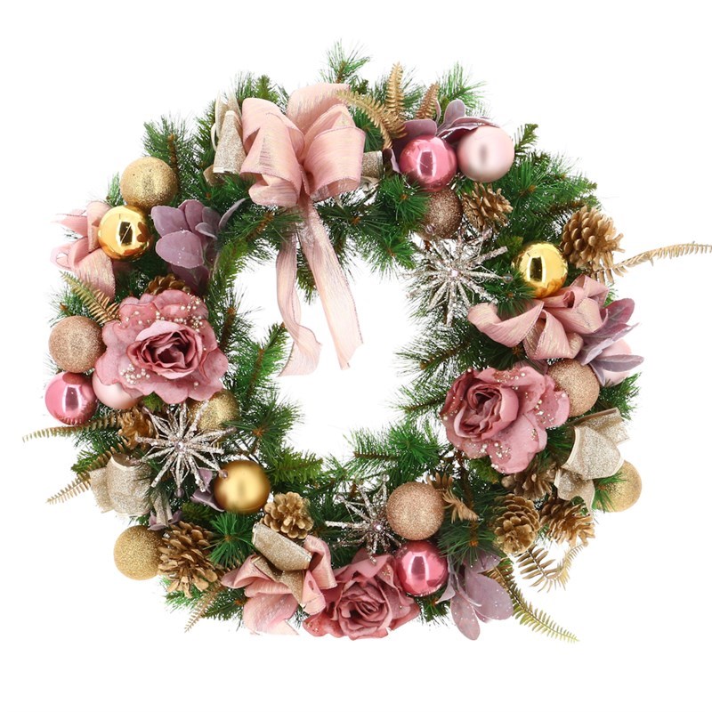 Artificial Christmas Decorated Door Wreath 24 Inches - Pink