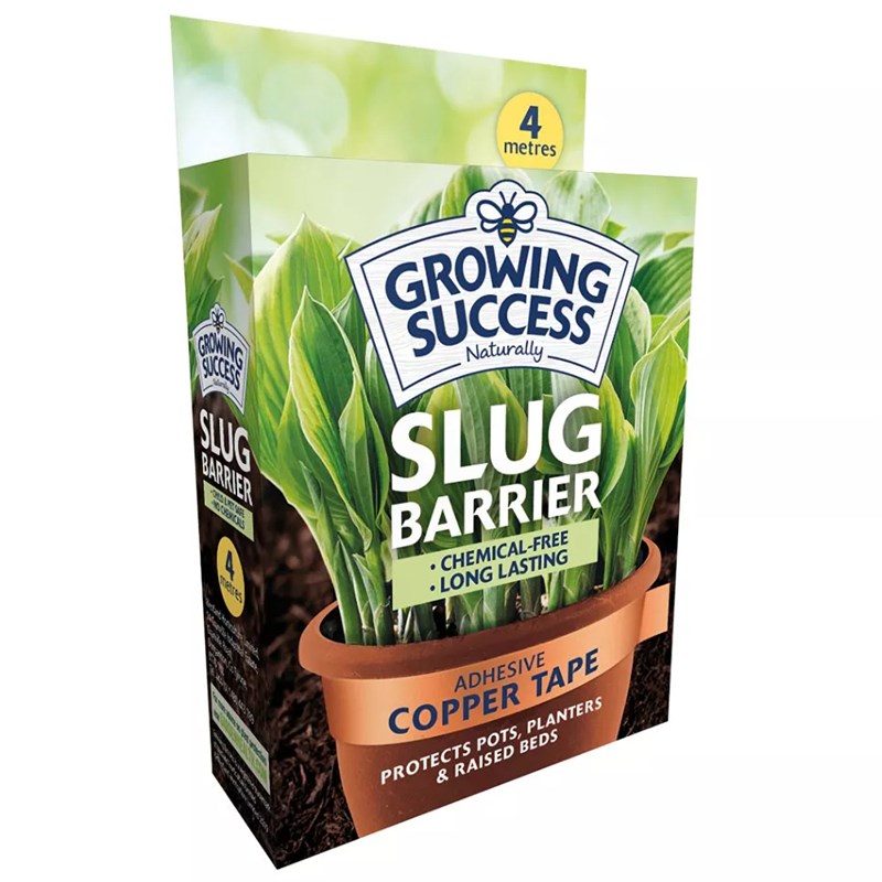Growing Success Slug Copper Tape is an adhesive copper tape. Apply adhesive copper tape around a pot to create a mild electric charge to deter molluscs.