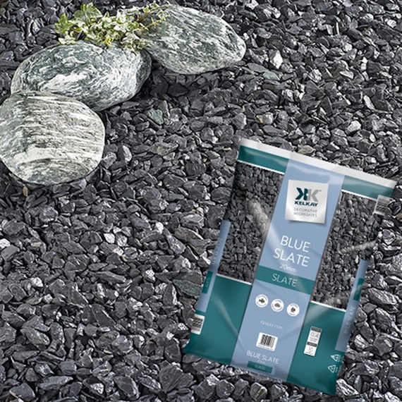 20mm coloured slate chips. Blue and plum tones for a beautiful path, highlighting pots or creating a stunning rockery. Fish friendly.