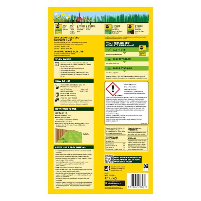 Miracle-Gro® Complete 4 in 1 feeds your lawn whilst also working to kill weeds and control moss.
