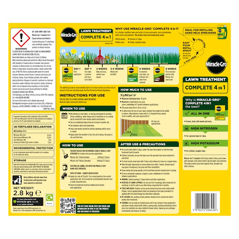 Miracle-Gro® Complete 4 in 1 feeds your lawn whilst also working to kill weeds and control moss.
