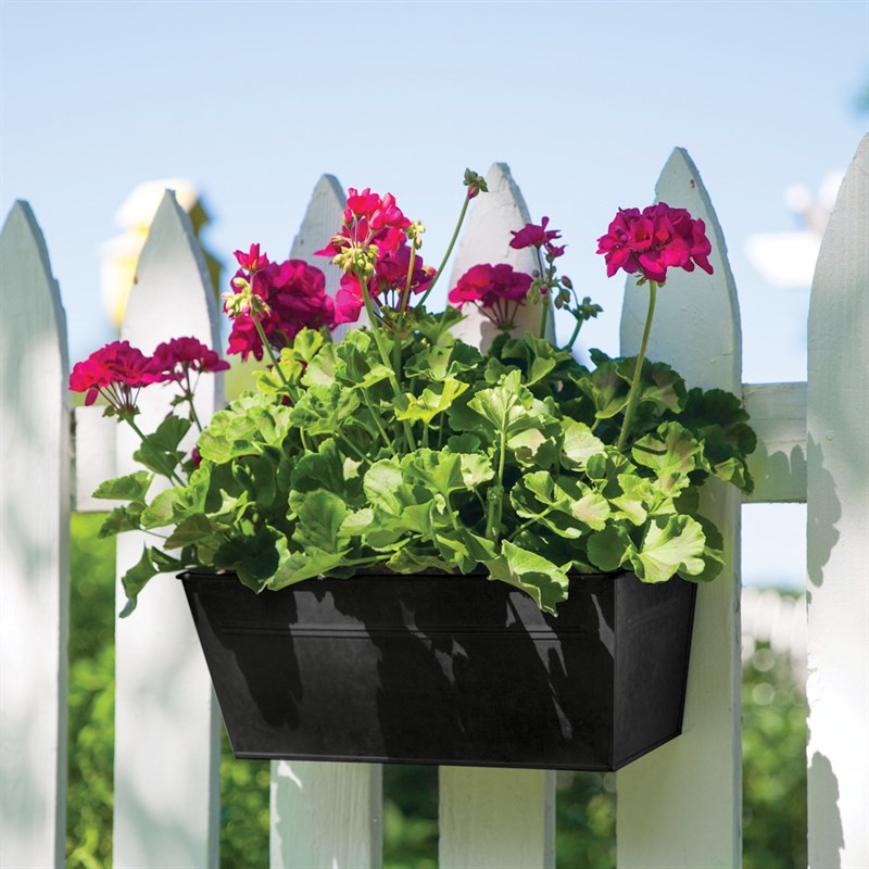 Panacea 16 Inch Over-the-Rail Metal Planter - Black (81067)