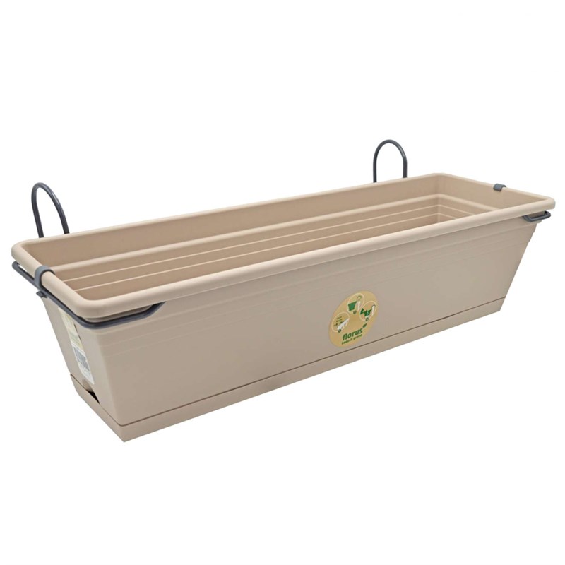 Florus Mediterran Balcony Trough Set 50cm Warm Taupe Plant Pot By Elho (1004954)