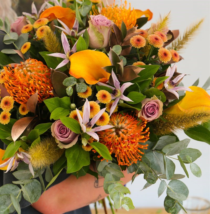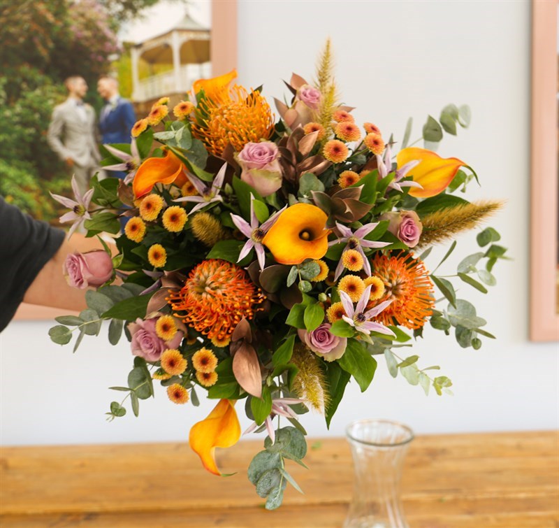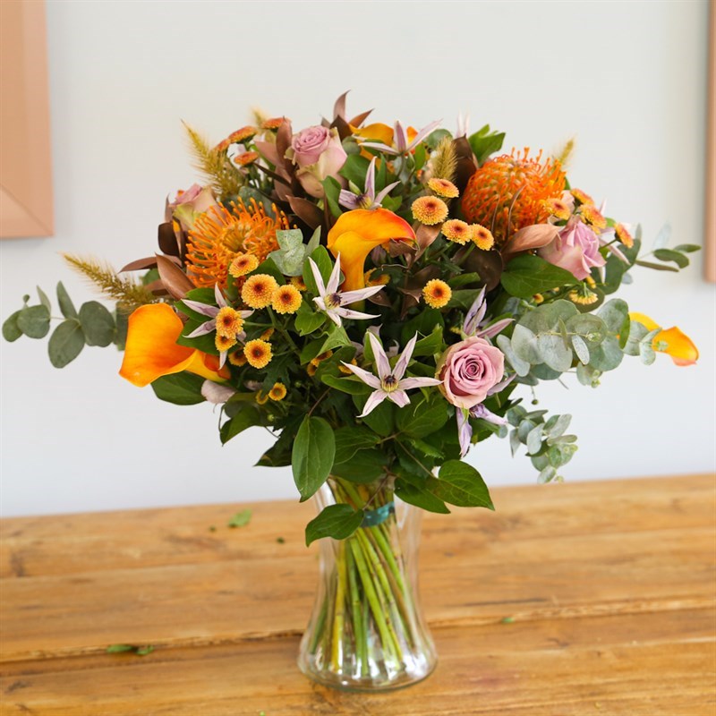 The October bouquet is full of orange flowers. Perfect for birthdays, anniversaries, birth of a baby or just to show someone how much they mean to you. This comes with a FREE vase! Arranged and presented beautifully by a member of our floristry team.