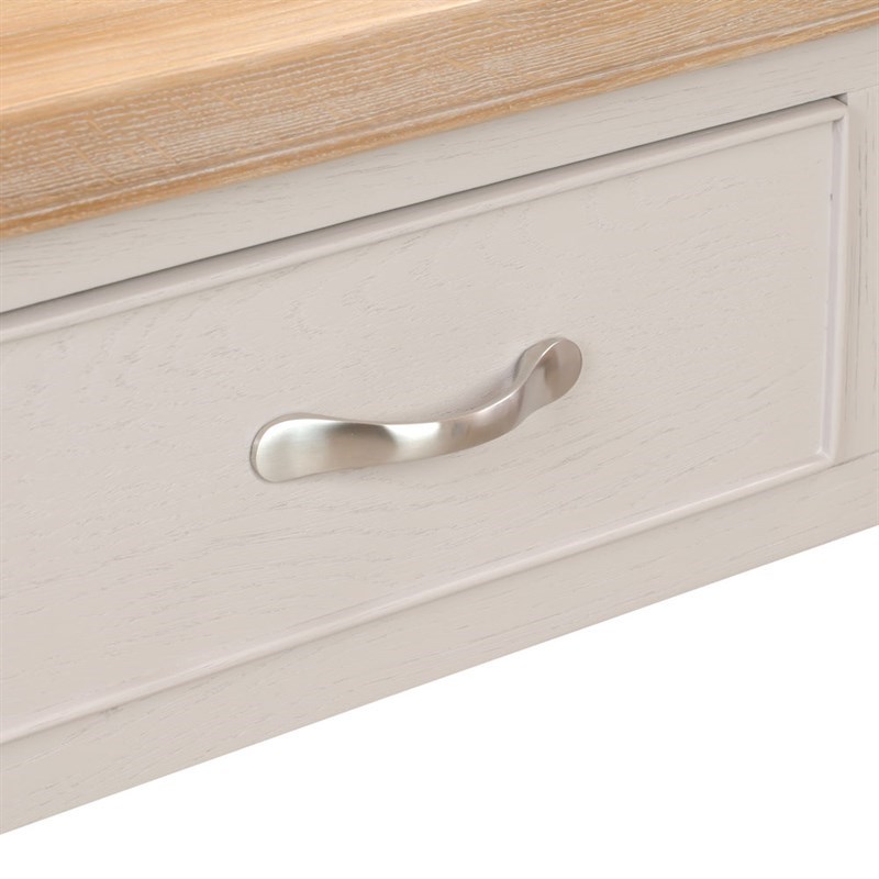 - Composition: Chatsworth Natura is manufactured in Oak - a mixture of solid and veneered MDF panels. Drawers, shelf supports etc made from Pine. The Oak we use for these ranges is White Oak - generally from North America. The base is then painted in a ''Putty'' grey so that the grain shows though. The tops have a slight grey wash over them.