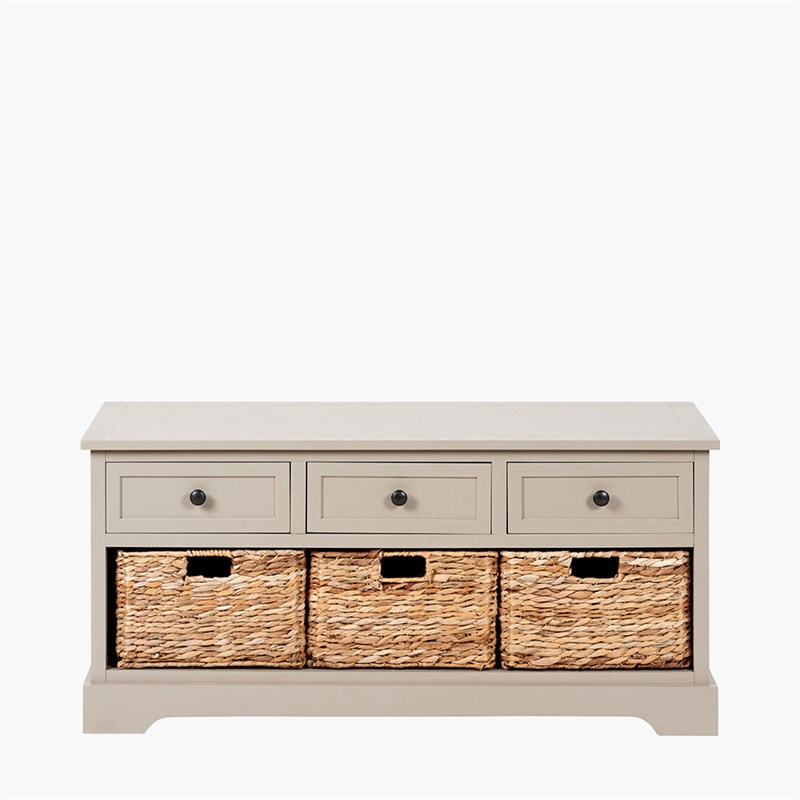 Devonshire Putty Pine Wood 3 Drawer 3 Basket Interior Furniture Unit
