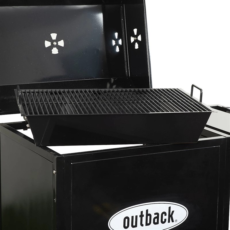 The Outback Roast Box 650 Charcoal Barbecue is straightforward durable solution to add a larger party catering facility for al fresco hosts. The large removable charcoal box makes cleaning and disposing of ash straight forward and much easier than other kettle models. With a chrome heat indicator and porcelain enamelled wirecooking grills, large capacity ash collector, adjustable air vents and hub-capped wheels, the Roast Box is a stand-out addition to the Outback charcoal range.
