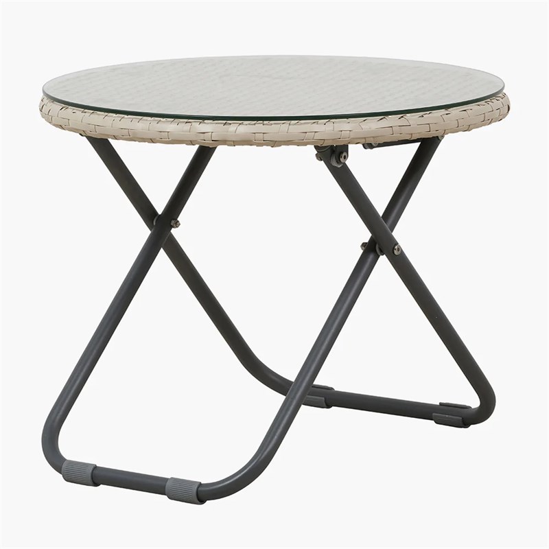 Faux rattan lounge furniture set, ideal for a conservatory and as a patio garden set – includes two very well made foldaway chairs and round table with glass top.