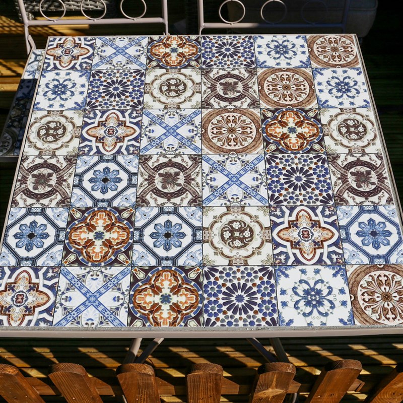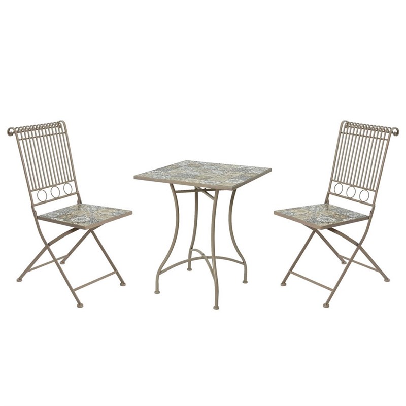 The Kaemingk Toulouse Mosaic Bistro Set is a stylish and comfortable outdoor seating option for two people. It includes two folding chairs and a folding table, all made with durable iron frames and a unique mosaic design.