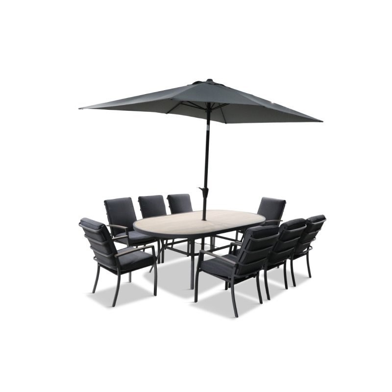 Leisuregrow Monza 8 Seat Oval Outdoor Garden Dining Set with 3x2m Parasol