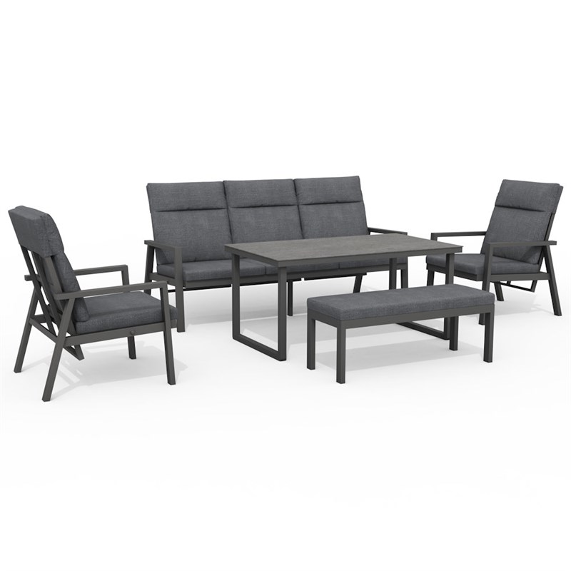 Dimensions - Lounge Sofa W196 x D70 x H72/98, Lounge Chair W72 x D79 x H72/98, Table W140 x D40 x H65cm, Bench W110 x D40 x H37cm