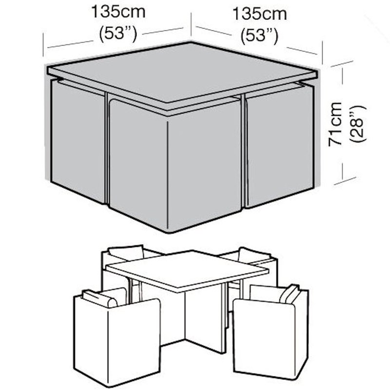 - Size Check: 135cm (53inch) Long 135cm (53inch) Wide 71cm (28inch) High Also Covers: Large Square Table