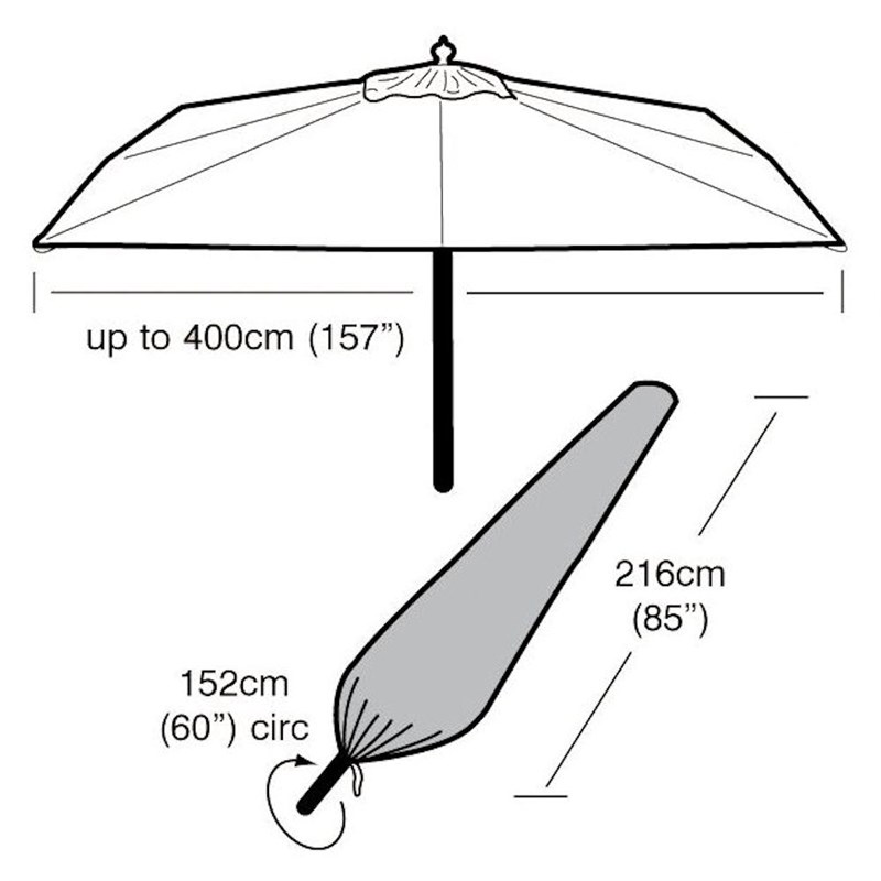 - Size Check: 152cm (60inch) Circ 216cm (85inch) High Fits Parasols Up To 400cm (157inch)