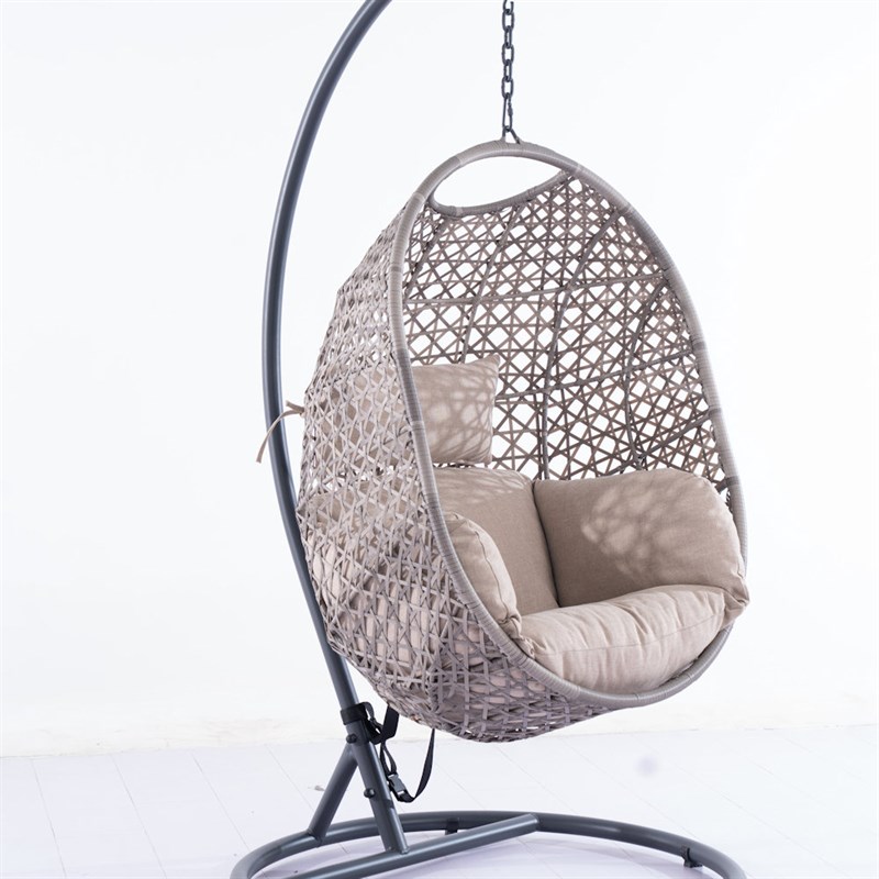 Supremo Single Hanging Outdoor Garden Furniture Egg Chair - Stone Leather/Wheat (Beige) (C50.026.22.18.0)
