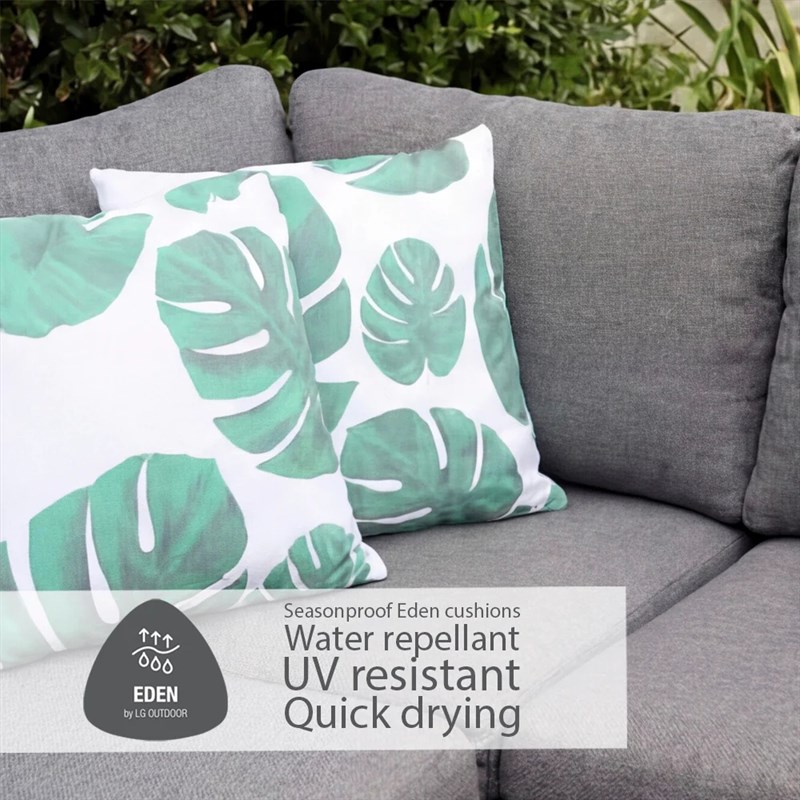 Designed for low-maintenance outdoor living, the PE rope weave is UV-resistant, waterproof, and easy to care for. Cushions are crafted with Eden season-proof fabric, offering water-repellent, UV-resistant, and quick-drying performance. StainSafe coating makes everyday spills simple to clean with a sponge, while eco-friendly EcoCore fillings provide sustainable comfort.