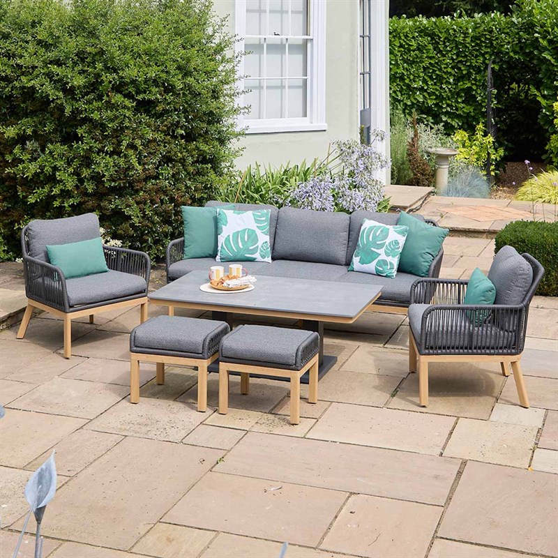 Leisuregrow Peru Lounge Outdoor Garden Furniture Dining Set with Adjustable Table