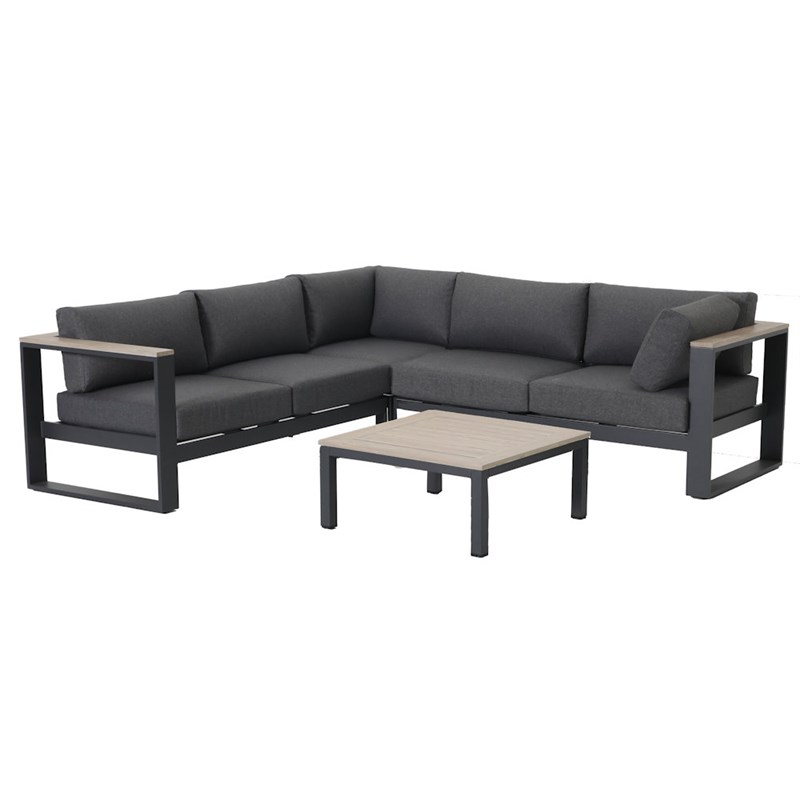 Upgrade your outdoor living space with the sleek and modern Mannington Mini Modular Set with Square Coffee Table.