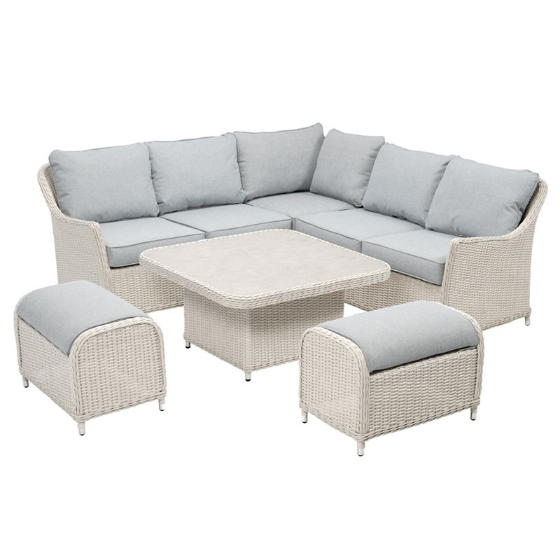 Woodlodge Antigua Pearl and Ash Mini Corner Outdoor Garden Furniture Set with Adjustable Table
