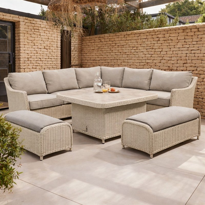 Woodlodge Antigua Pearl and Oatmeal Square Casual Corner Outdoor Garden Furniture Set