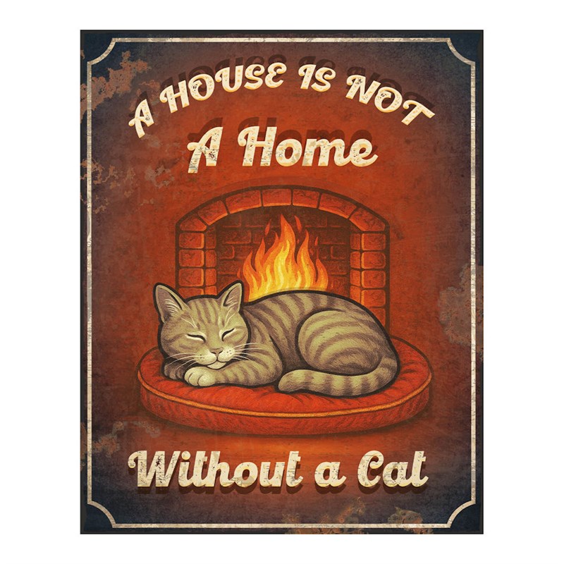 Primus A Home With A Cat Metal Outdoor Garden Decor Wall Sign (PH1030)