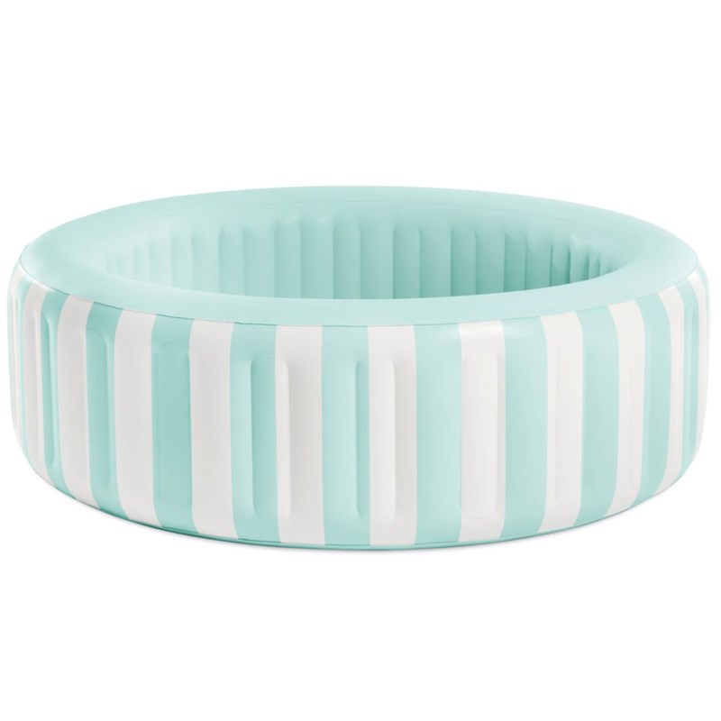 A simple and charming inflatable pool with a cabana-inspired design. Equipped with a drain valve for easy water release. Suitable for children aged 3 and up.