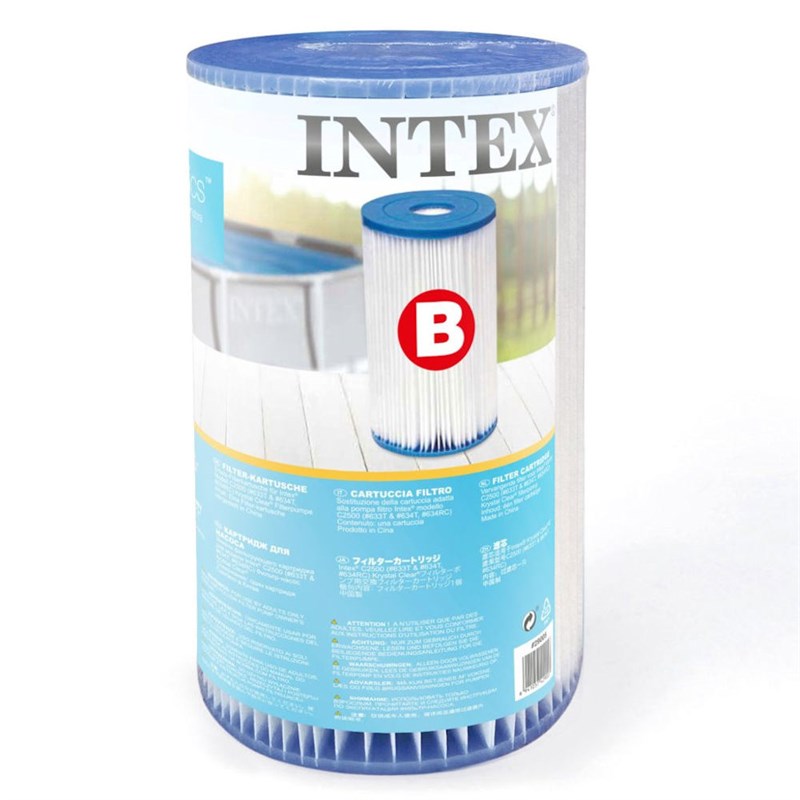 The Intex filter cartridge, Model B, ensures correct and effective cleaning of your above ground pool. The cylindrical shape and the folded dacron filter material effectively capture debris. This type of product is suitable for filter pumps with a flow rate from 2,006 L/h to 5,678 L/h and is compatible with the following Intex cartridge filter pump models: 26634/ 28634. It is recommended to clean the cartridge daily under running water and replace it every 2 weeks. The package contains 1 piece.