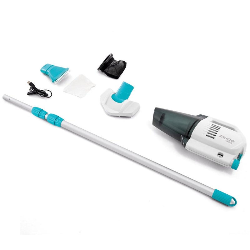 Cleaning has never been so simple and fast! The Intex ZR100 Vacuum Cleaner with a rechargeable battery is suitable for vacuuming PureSpa hot tubs and all above ground pools with a maximum diameter of 549 cm. It includes a 239 cm long lightweight telescopic aluminum pole and two interchangeable vacuum heads. It features an automatic shutdown function when the vacuum is not immersed in water and an IPX8 waterproof switch for added protection. With 5-6 hours of charging, you get up to 50 minutes of running time! USB charging cable included.