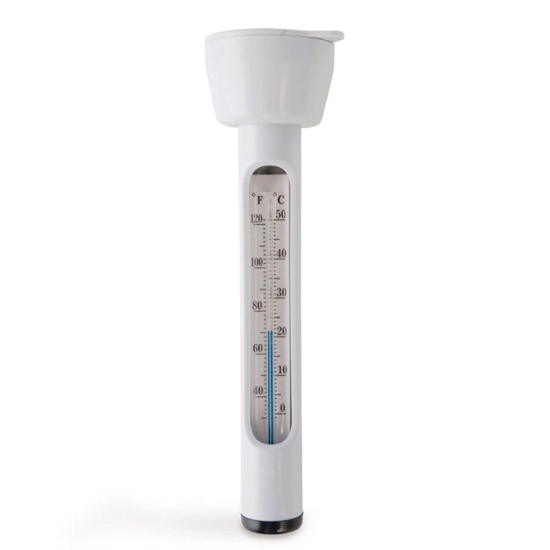 Monitor the temperature of the pool with this thermometer. In addition to being handy and easy to use, it will always be within reach because it floats on the water surface! The temperature is displayed in degrees Celsius or Fahrenheit (temperature range displayed: 0-50 °C and 30-120 °F). The package includes a string to tie the thermometer to the pool.