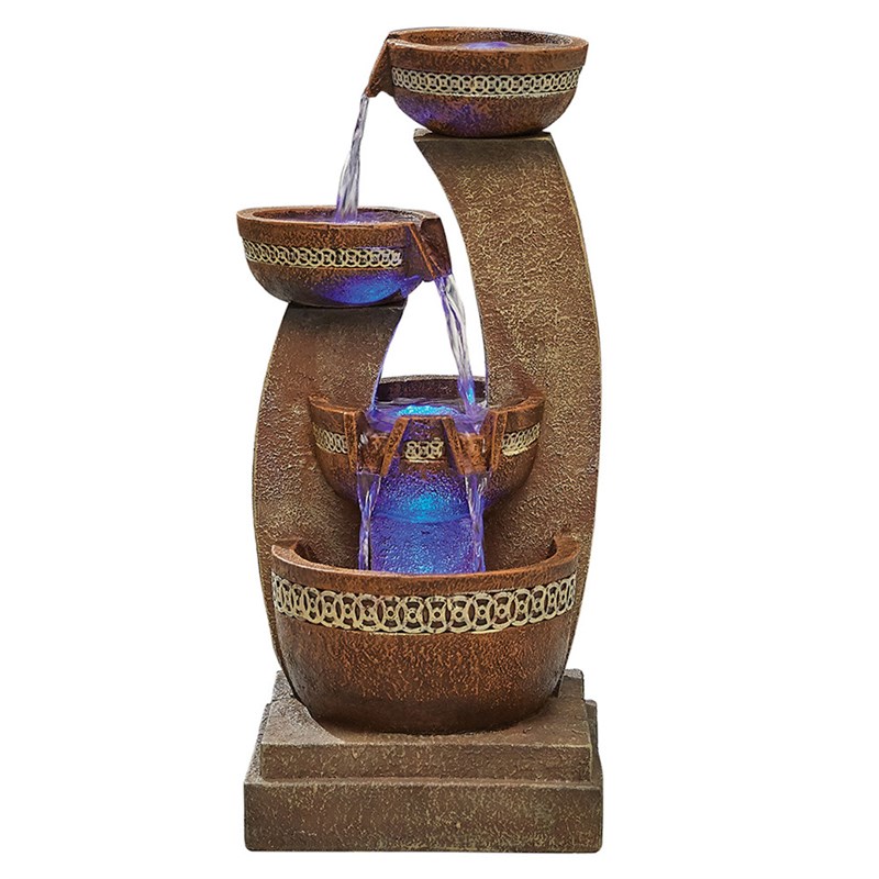 Built-in, low-voltage LED lights illuminate the four pools with an attractive blue glow at night, bringing the water feature to life. You can relax and enjoy the sounds of bubbling water all day with its gently cascading water.