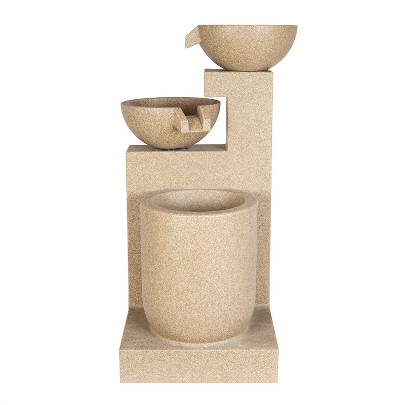 Dune Falls is a contemporary design with clean lines and smooth curves. It has three tiers with pools that continuously pour from one to another. Even though its made from 100% PE material which makes it recyclable at end of life, it looks like natural stone. Intergrated LED lights enable this feature to be enjoyed day or night.