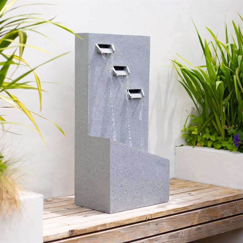 Trinity Falls is a contemporary outdoor water feature that makes an impact in any garden. This speckled grey feature emulates natural stone while being significantly lighter. This outdoor water feature will sit wonderfully against a wall or within an attractive floral display.