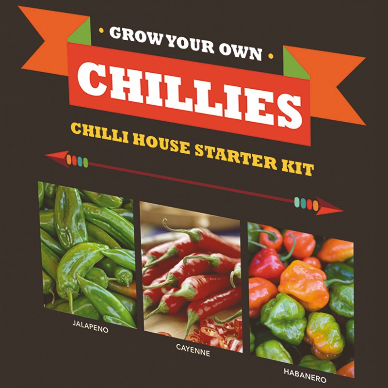 Each kit contains 3 starter pots, compost, instructions and seeds of Jalapeno, Cayenne and Habanero.