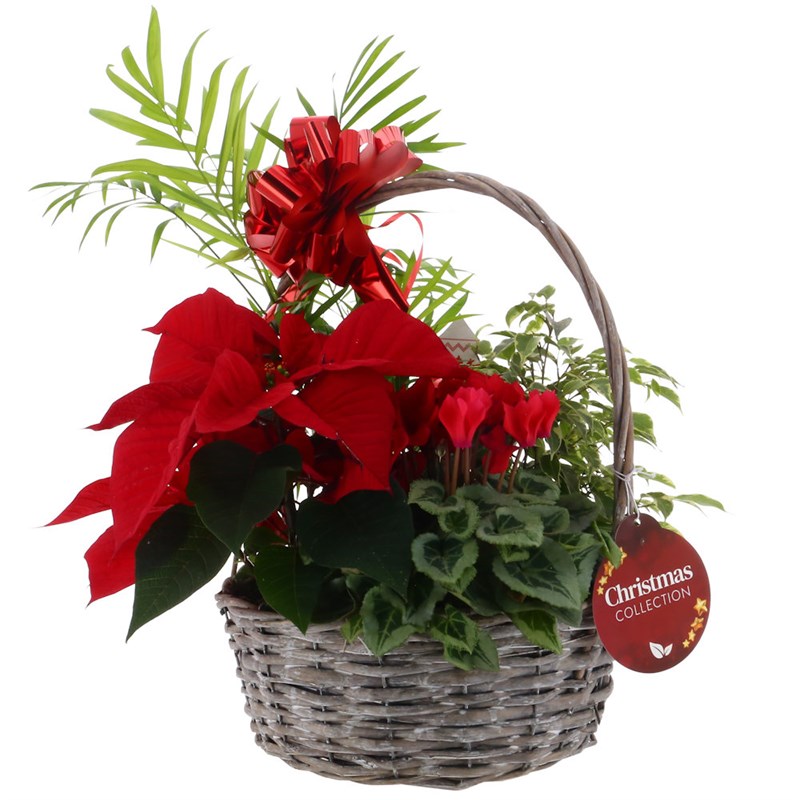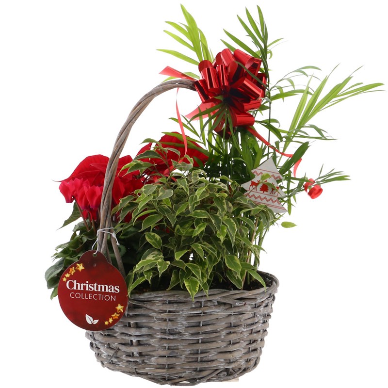 Christmas Festive Mixed Houseplant Large Grey Woven Round Handled Basket
