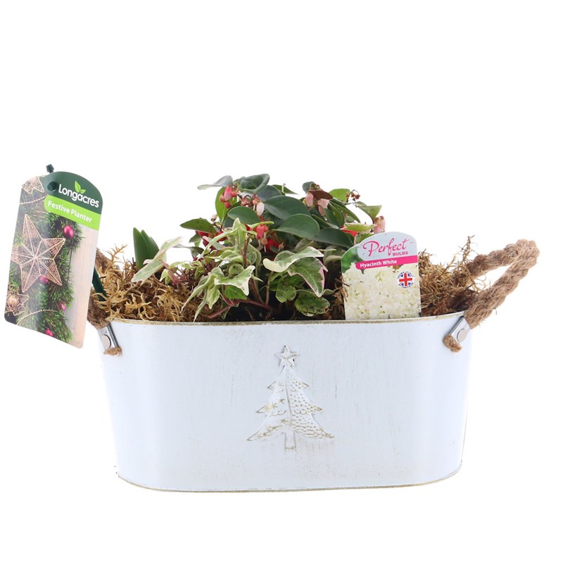 Christmas Festive Small White Christmas Tree Design Bulb Bedding Planted Trough