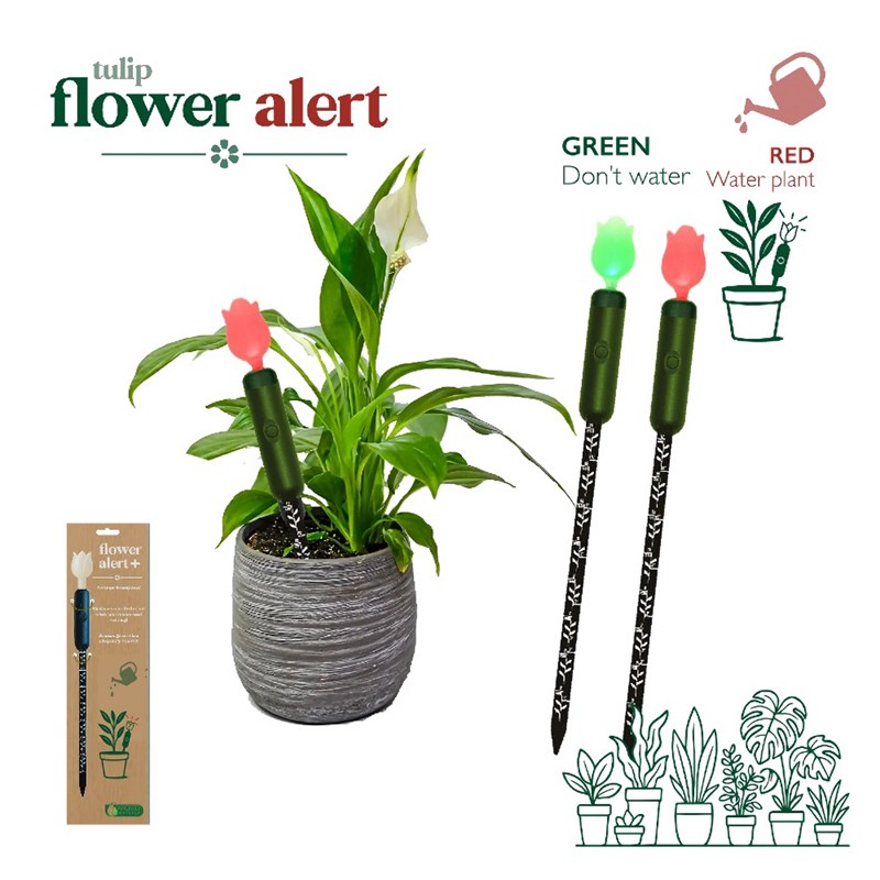 Love your taller plants! Just pop the sensor into the soil and it flashes red when the soil is dry and shows green when your plant is happy. Tulip flower design. Never forget to water your plants again!