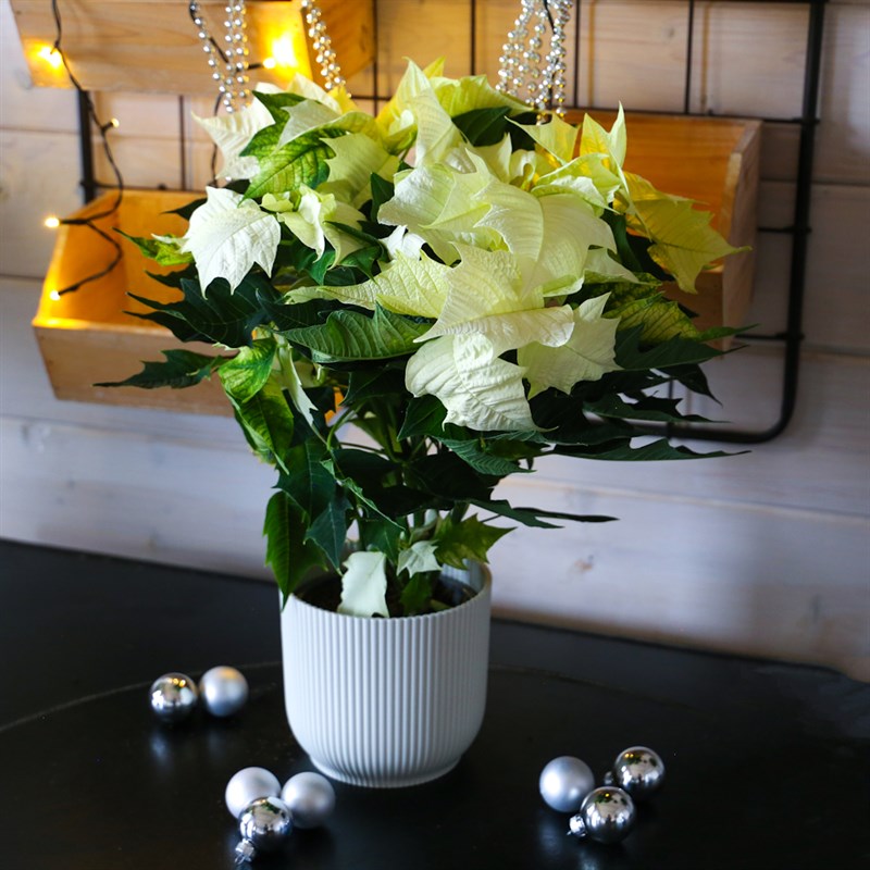 Poinsettia Christmas Houseplant - White 13cm - With Decorative Pot