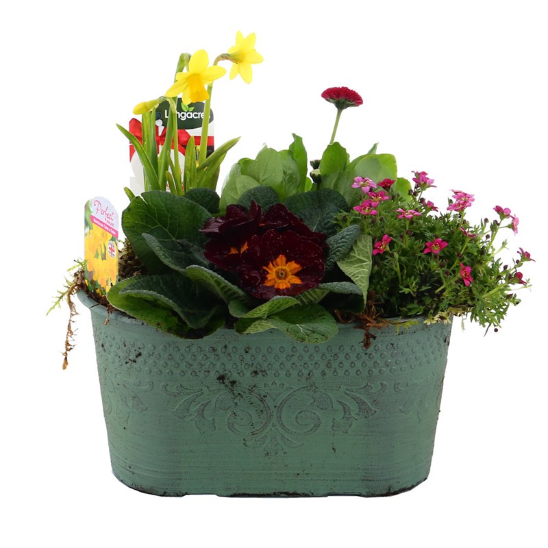 Mother's Day Planted Green Textured Oval Trough Bedding & Bulb Container