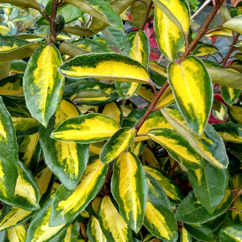 A resiliant shrub with variegated leaves in green, lime and golden yellow.
