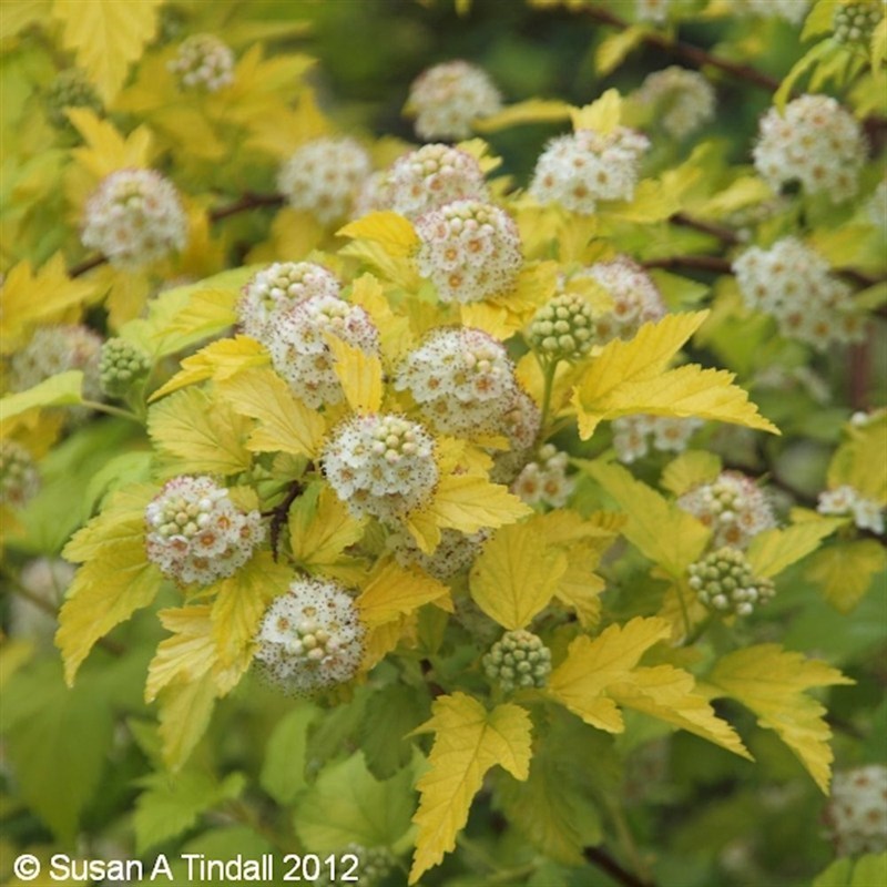 A compact shrub with bright yellow, three winged leaves that become greener with age. Clusters of small cream-pink flowers appear during summer.